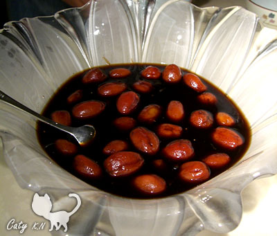 紅酒釀蕃茄是開胃菜,在餐廳用餐,決不可能有上面一大碗公出現的情形,這可是在老師家才有的,大部分都是放個兩顆、頂多三顆在小碟子上讓客倌細細品嚐。